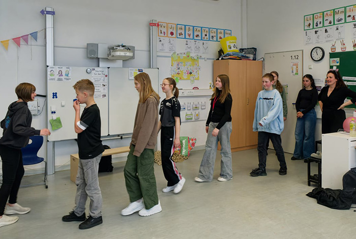 In einer praktischen Prüfung mussten die Prüflinge zeigen, was sie gelernt haben. Die Aufgabe: einen simulierten Streit schlichten. Die „Streithähne“ wurden dabei täuschend echt von unseren erfahrenen Streitschlichtern aus Klasse 4 gespielt – danke für euren Einsatz!
