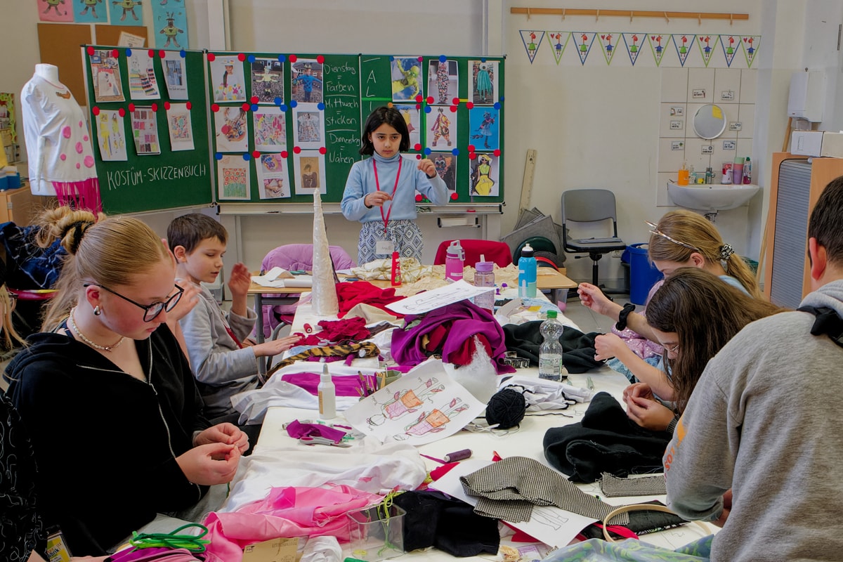 Die Theaterfabrik, die unter diesem Motto vom 7.–11. April stattfand, wurde am 11.4. mit einer Präsentation der Ergebnisse beendet. Eine Woche lang konnten sich fast 50 Kinder und Jugendliche von 9 bis 13 Jahren kreativ ausprobieren. Neu in diesem Jahr war, dass immer zwei künstlerische Bereiche miteinander verknüpft waren. Es gab die Themen Tanz & Gesang, Schauspiel & Kostümdesign sowie kreatives Schreiben & Geschichten erzählen.